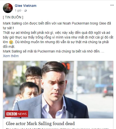 Mới đây, phòng cảnh sát Los Angeles xác nhận rằng diễn viên Mark Salling tự tử. Mark Salling nổi tiếng nhờ vai diễn Noah "Puck" Puckerman trong loạt phim Glee - phim ca nhạc rất được khán giả trẻ yêu thích.