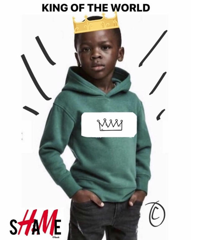 Hình ảnh em bé được đội vương miện là phổ biến nhất, với các kiểu vương miện khác nhau, em bé trở thành “Vua của cả thế giới”. Logo H&M bị biến tấu thành chữ SHAME (tạm dịch: nỗi nhục).