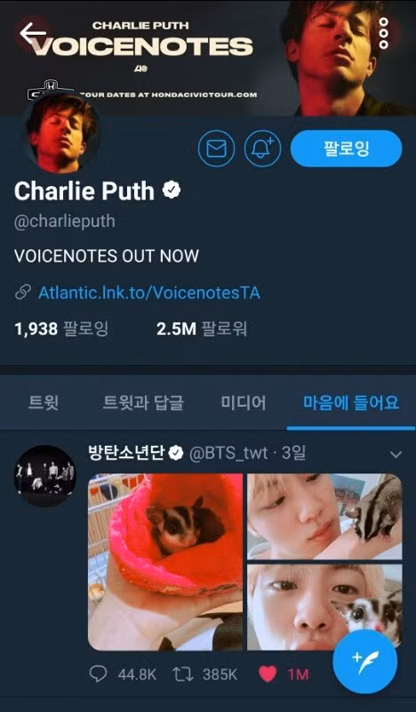 Dưới một bài đăng về chủ đề này trên diễn đàn, cư dân mạng Hàn đã để lại những bình luận thể hiện sự thích thú với mối quan hệ của hai ca sĩ. "Jungkook à, hãy mau đáp lại tình cảm của Charlie bằng cách retweet nào", "Nhìn ảnh này làm tôi liên tưởng đến việc anh chàng là một người ngại ngùng khi thể hiện cảm xúc. Giờ thì họ trở thành hội bạn Twitter rồi đó", "Tôi là fan hâm mộ của nhạc Pop và đây là lần đầu tiên tôi thấy tài khoản Hàn Quốc trong mục đề cử của mình. Bangtan đỉnh thật đấy. Tôi phải thừa nhận điều đó", "Jungkook chắc không thể kiềm chế nổi cảm xúc của mình mất"...