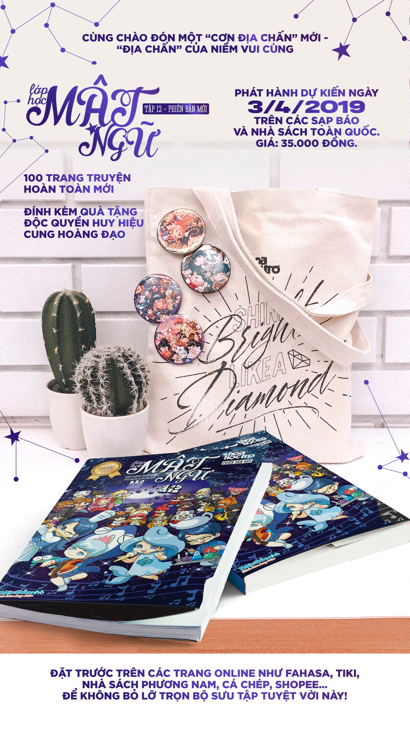 Các fan Lớp Học Mật Ngữ hẳn đã sốt ruột đợi đọc truyện mới lắm rồi phải không? Tập 12 này chính xác là một phiên bản mới tịch tình tinh với toàn bộ những truyện tranh chưa bao giờ xuất hiện. Đó là truyện Hiệp Sĩ Tiết Kiệm tặng bạn đọc thông điệp cực cute về việc “gieo thói quen nhỏ, gặt kết quả to”. Và truyện Bầu Trời Mai Cua về tình bạn nối khố giữa Cự Giải và Nhân Mã. Nghe cái tên thôi là thấy tò mò rồi đúng hông!