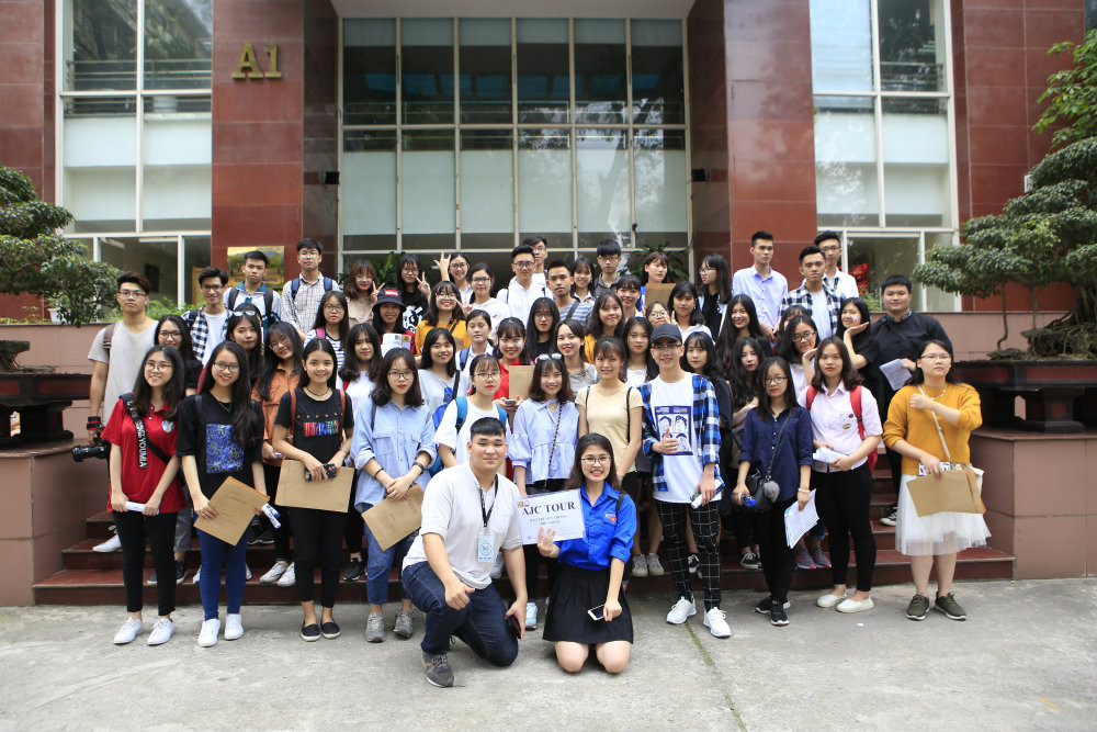 Các bạn teen check-in tại tòa nhà A1 của Học viện Báo chí và Tuyên truyền.