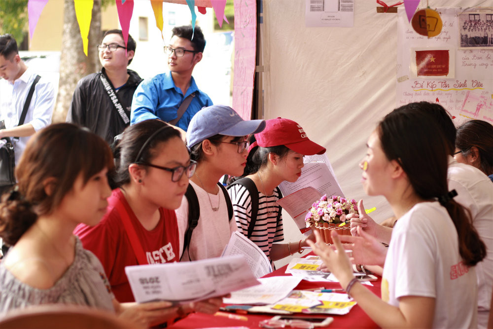 Các bạn teen còn được tư vấn chọn ngành bởi các anh chị tình nguyện viên.