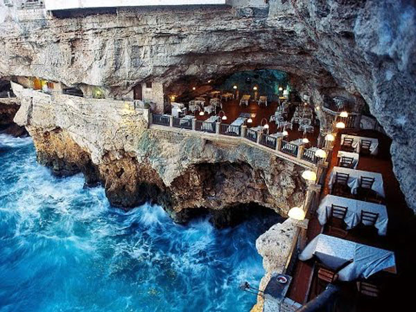 Nhà hàng hang động này ở thành phố Polignano a Mare của Ý nằm ở độ cao 25m trên biển Adriatic.