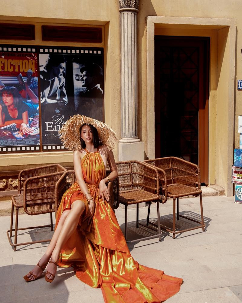 Trong bộ ảnh chào mùa Hè mới được tung ra, Hoa hậu Tiểu Vy cũng mặc lại thiết kế này, cô mang đến một phong thái khác hẳn với đàn chị Đỗ Mỹ Linh.