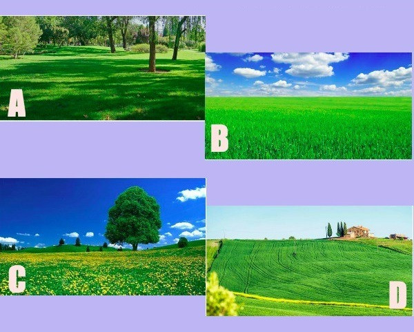 Hãy quan sát thật kỹ bốn bức ảnh chụp đồng cỏ xanh mướt dưới đây, và chọn ra nơi bạn muốn được ngắm nhìn lâu nhất nhé.