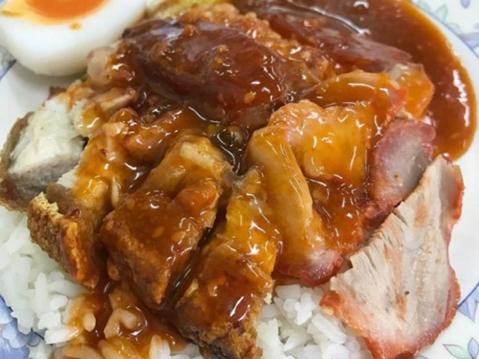 Món ăn phổ biến là Kho Moo Grob, được chế tạo từ thịt lợn giòn rụm với cơm, ở dưới lớp nước sốt ngọt ngon, ở bên cạnh là một chút trứng luộc và xúc xích kiểu Trung Quốc.