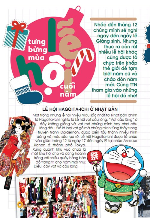 Với chủ đề lễ hội ngập tràn trên số báo đầu tiên của tháng 12, Thiên Thần Nhỏ 270 sẽ mời bạn cùng khám phá những lễ hội tưng bừng dịp cuối năm ở các nước. Bạn sẽ thấy là tháng 12 không chỉ có mỗi Giáng sinh là ngày lễ. Và rất nhiều những điều thú vị về các ông già Noel ở các nước cũng sẽ được Thiên Thần Nhỏ 270 rỉ tai với bạn. Thậm chí ở Mỹ muốn trở thành ông già Noel cũng phải học đó nha!