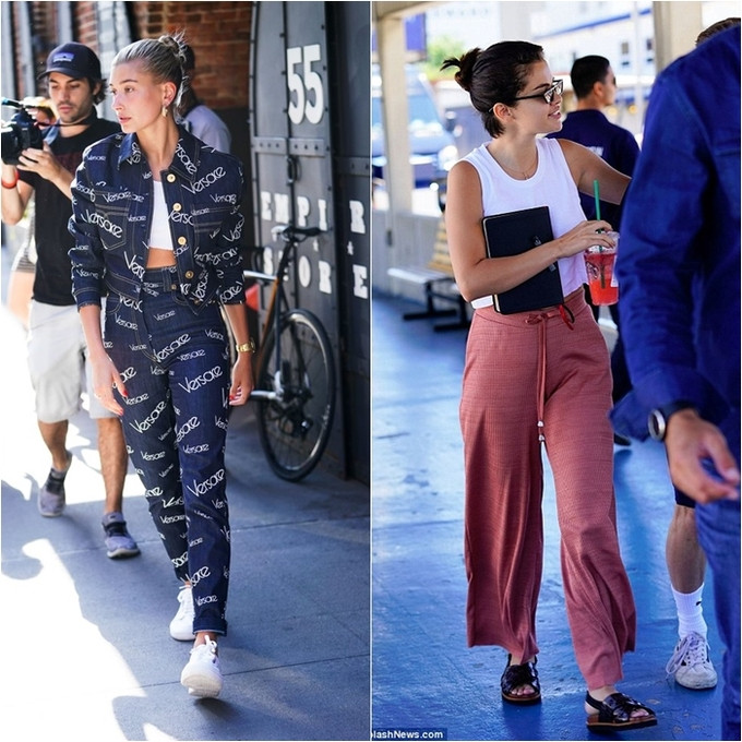Tiếp tục là một set đồ ấn tượng của Hailey: nguyên cây Versace chất lừ mix cùng giày thể thao trắng trendy. Đối với Selena, cô vẫn yêu thích phong cách thoải mái khi du lịch cùng bạn bè: croptop màu trắng mix quần ống rộng và sandals đen.