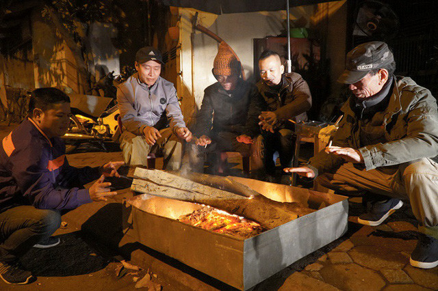 Đêm 31/12, nền nhiệt tại Hà Nội xuống dưới 10 độ C, những người làm nghề xe ôm, bảo vệ... phải đốt lửa để để cùng sưởi ấm.