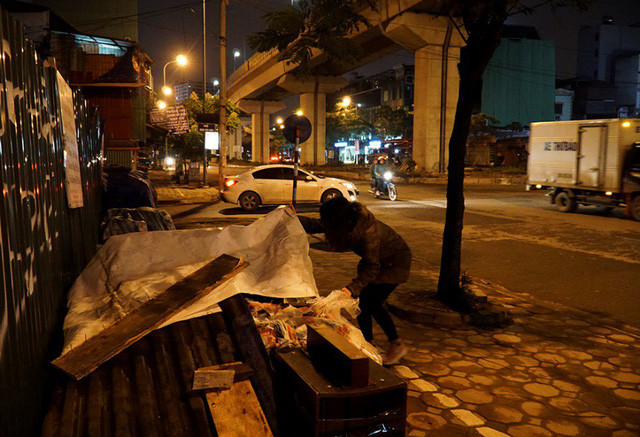 12h đêm, tại phố Trần Duy Hưng (Hà Nội), công nhân vẫn miệt mài với công việc trong giá lạnh.