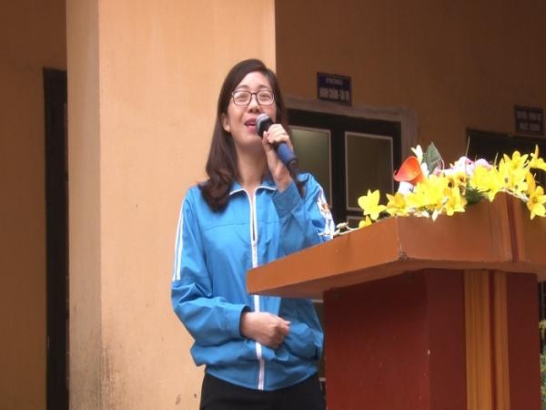 Bà Hoàng Thị Hồng Mai - Phó Chánh văn phòng Hội đồng Đội TƯ phát biểu tại buổi lễ.