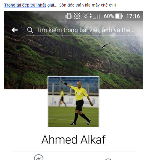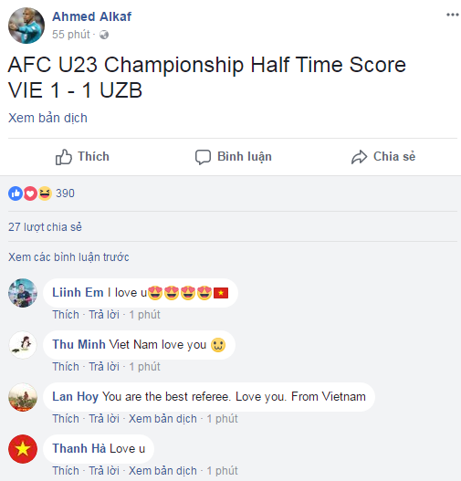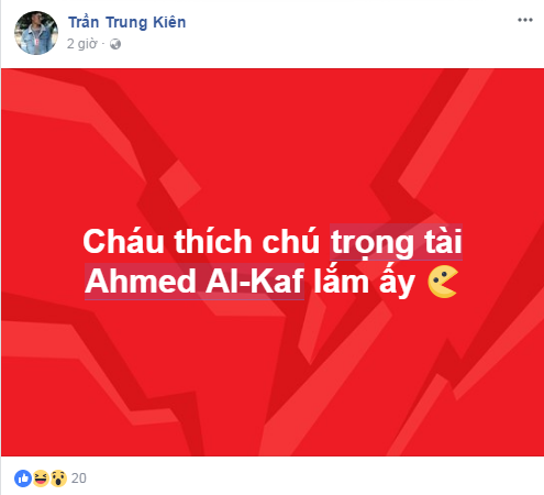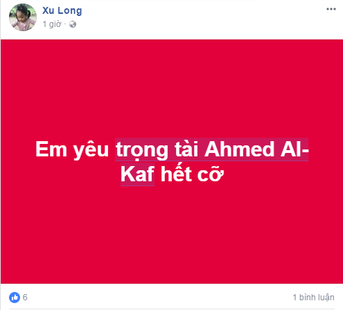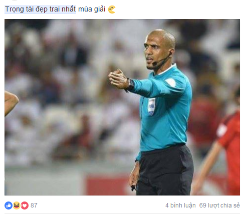 Cổ động viên Việt Nam bày tỏ sự yêu mến đến "soái ca" trọng tài.