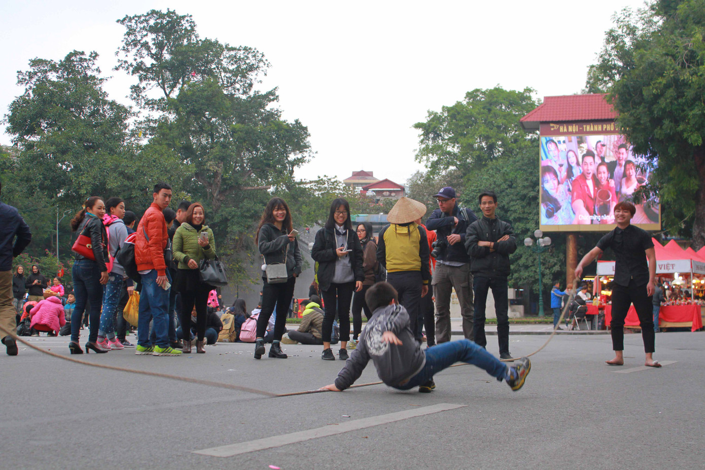 Hiện nay, các trò chơi dân gian trên phố đi bộ do CLB MyHanoi tổ chức thường diễn ra vào mỗi cuối tuần, trong khung giờ từ 9h đến 11h30, từ 15h30 đến 18h và từ 19h đến 22h trước khu vực tượng đài Cảm Tử. Teen nào muốn "trở về tuổi thơ với giá 0 đồng" thì đây là lựa chọn quá tuyệt vời đó!