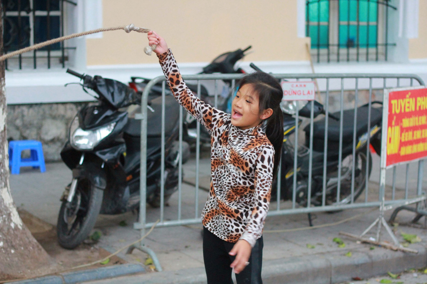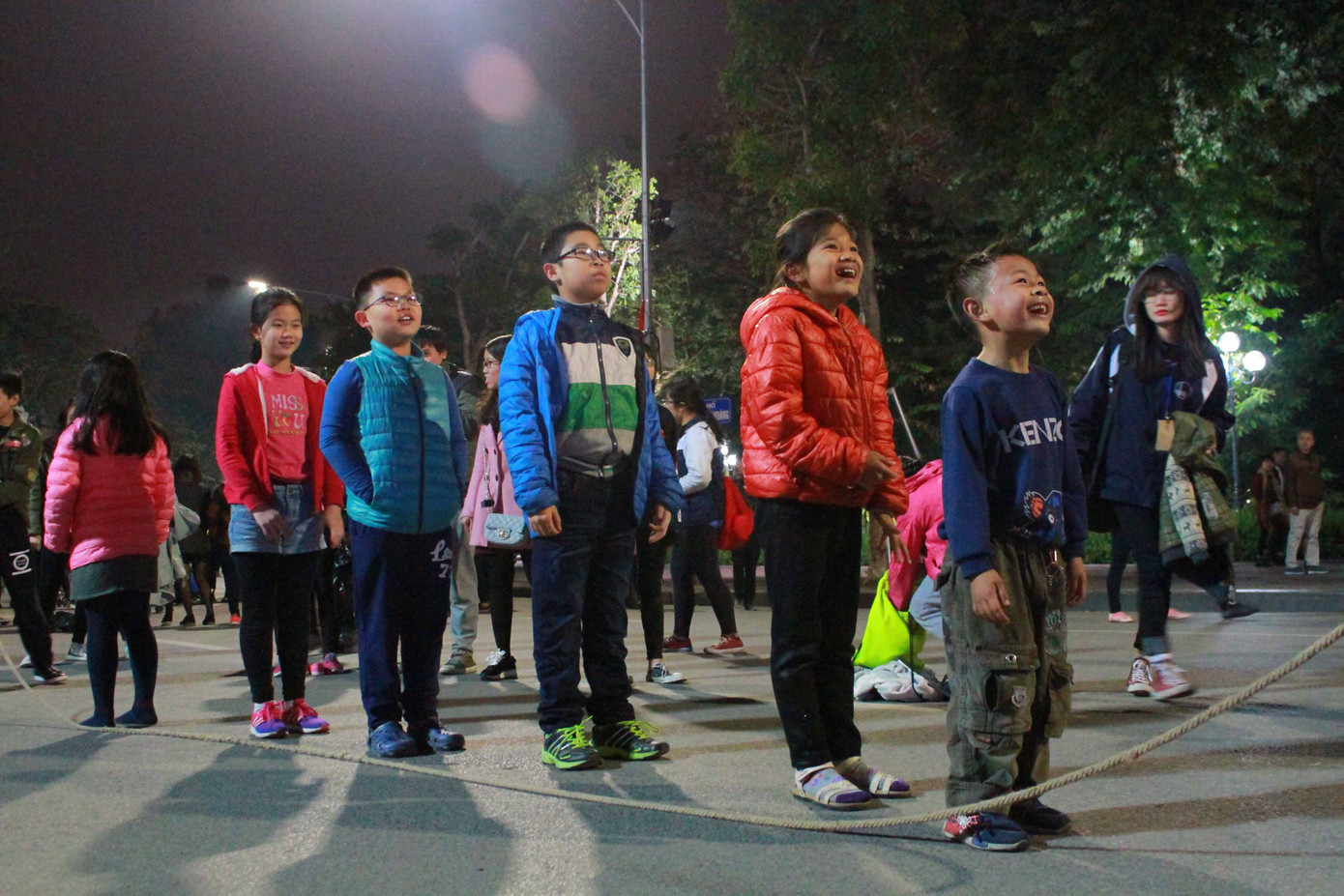 Cả con đường rộn vang tiếng cười của các em nhỏ.