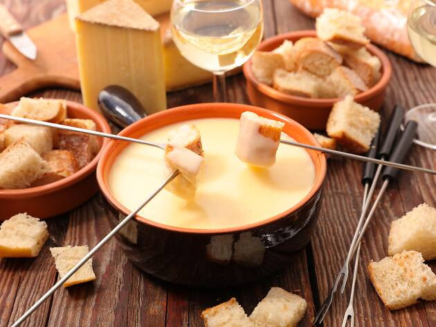 Fondue là món ăn được làm từ phô mai đun chảy cùng với những thành phần khác như rượu vang trắng, tỏi, chút bột bắp cùng với đó là Kirsch cùng tinh bột ngô. Món ăn sẽ được phục vụ trong một nồi gốm khá đặc biệt có tên gọi là caquelon. Nồi sẽ luôn được đun khi thưởng thức để có thể giữ cho phô mai không bị vón cục. Khi ăn bạn sẽ nhúng bánh mỳ, khoai tây, thịt bò,...vào lẩu phô mai để thức ăn chín và quyện một lớp áo phô mai. Lẩu Fondue thì lỏng và nhẹ hơn, vì có rượu vang nữa nên không quá béo ngậy.