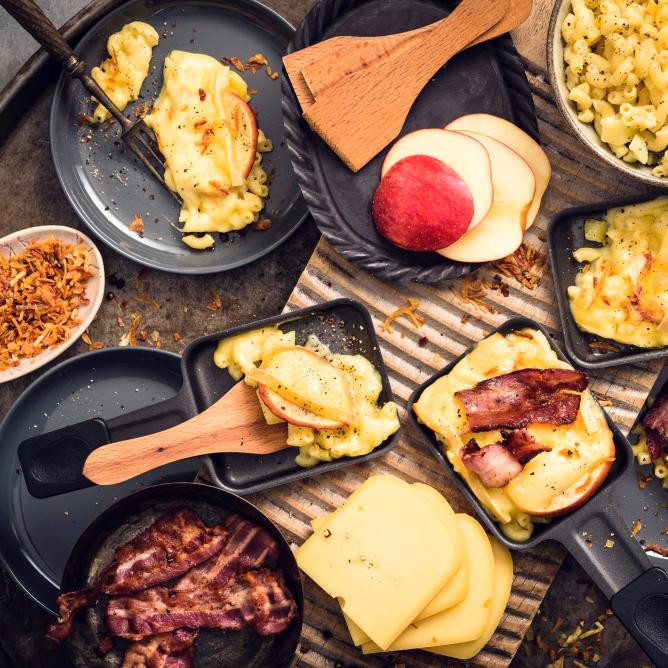Món ăn có thể ăn ngay, hoặc có thể được đựng trên các khay nhỏ rồi nướng trên bếp tiếp. Raclette sẽ tiếp tục tan chảy để quyện chặt vào đồ ăn. Raclette nướng luôn thơm, béo, và không thể chối từ khi ngửi thấy mùi thơm tỏa ra. Dù béo thế nhưng là một loại phô mai nướng nên Raclette không ngấy ứ và hầu như chúng hợp với mọi loại thịt và rau củ đấy.
