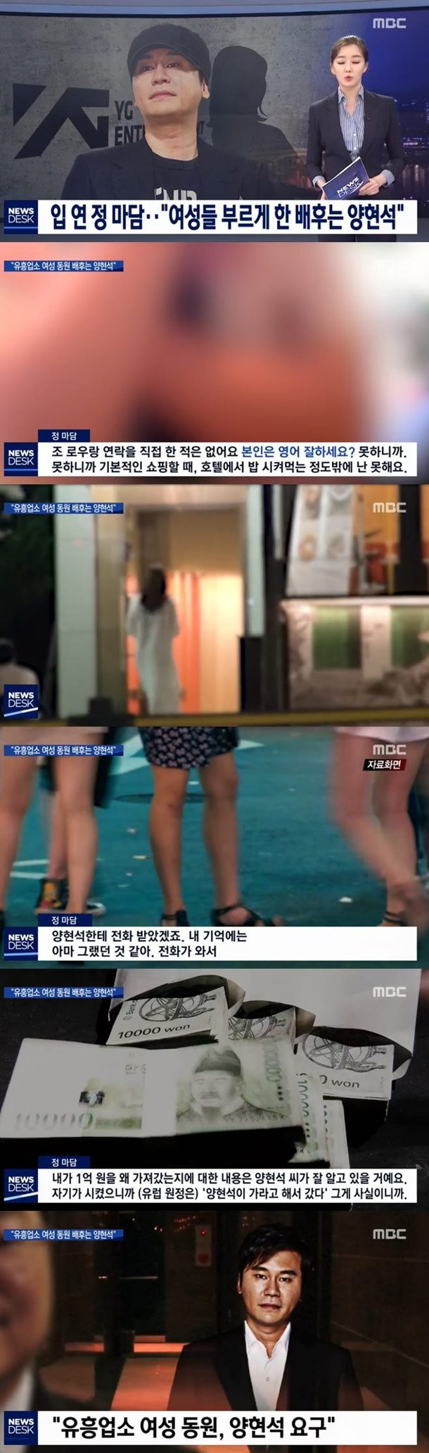 Madame Jung cũng đề cập đến chuyến đi tới Monaco vào tháng 10-2014. Bà còn có bằng chứng về việc nhận được 200 triệu won (khoảng 4 tỉ đồng) từ Yang Hyun Suk. Ngoài ra, Madame Jung cũng nhấn mạnh rằng bà ta không biết những người nhận dịch vụ mại dâm là ai vì bà không biết chuyện gì đã xảy ra sau khi họ đi uống rượu.