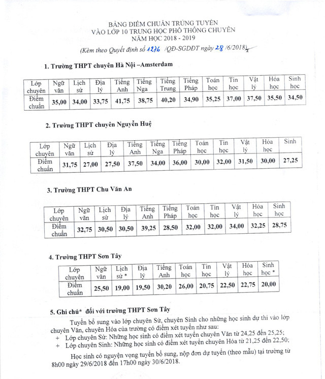 Một số trường THPT chuyên trực thuộc ĐH Quốc gia Hà Nội và ĐH Sư phạm Hà Nội cũng đã công bố điểm thi và điểm chuẩn trúng tuyển năm 2018 từ trước đó.