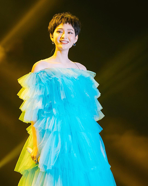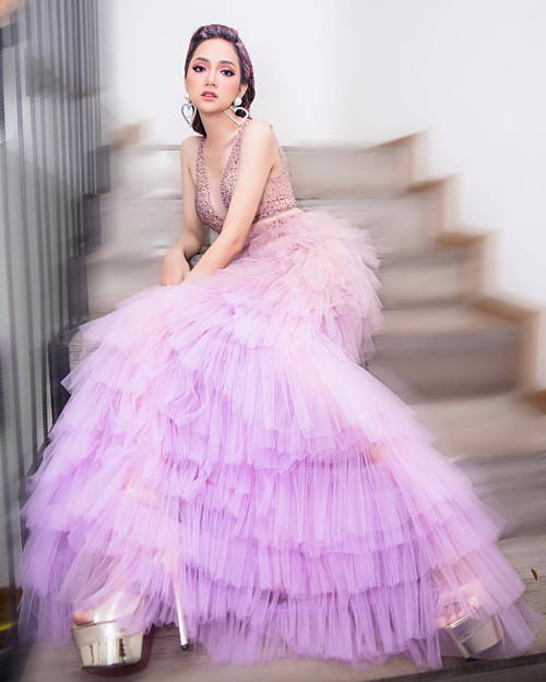 Váy "bánh kem" tầng lớp giúp Hiền Hồ khoe vẻ đáng yêu như búp bê.