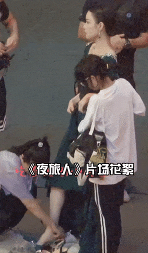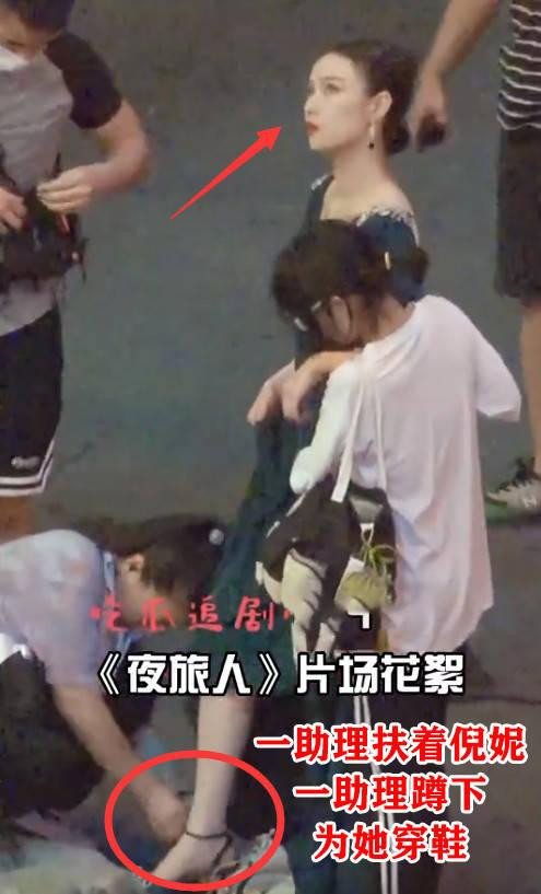 Trong lúc thay giày, một nữ trợ lý khác đang đỡ Nghê Ni vì sợ nữ diễn viên bị ngã do không giữ được thăng bằng. Nghê Ni được các thành viên đoàn phim vây quanh, săn sóc, nhưng cô dường như không để tâm đến việc đó. Thay vào đó, Nghê Ni thỉnh thoảng ngước nhìn lên, bĩu môi, trò chuyện với người khác, không chú ý gì đến nữ trợ lý đang phải cúi mình đi giày cho cô.