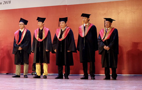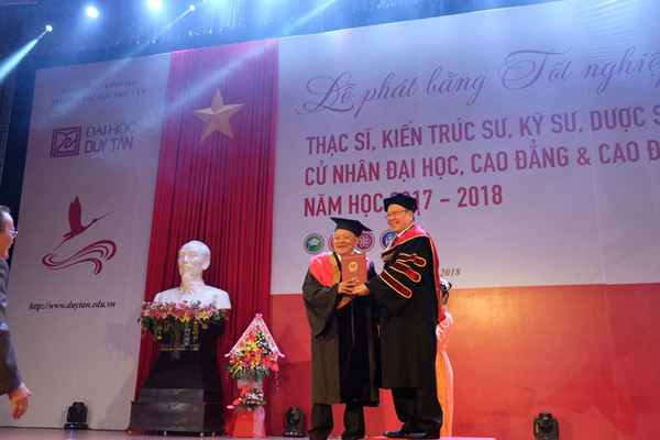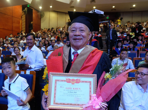 Khoảnh khắc đáng nhớ đối với cụ Thiệt trong lễ phát bằng tốt nghiệp năm học 2018 - 2019 của ĐH Duy Tân (Đà Nẵng).