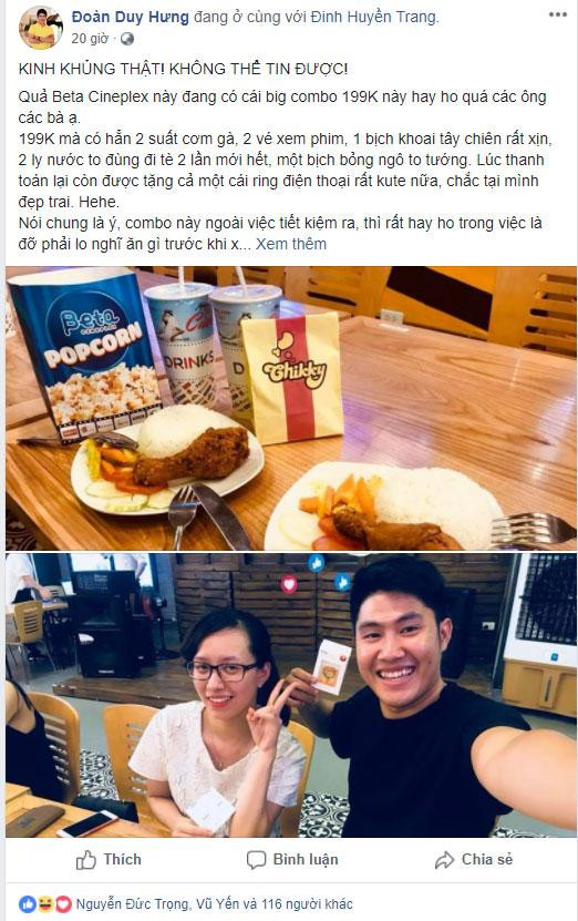 Sau vụ lùm xùm tranh cãi nảy lửa bắt nguồn từ trang NEU confessions xoay quanh việc hẹn hò với chỉ 200K, Beta Cineplex xuất hiện như một giải pháp cứu cánh cho các chàng trai. Nổi tiếng là cụm rạp phim thân thiện với mọi độ tuổi cùng bảng giá siêu “hạt dẻ”, Beta Cineplex đã chiếm được cảm tình của khách hàng với rất nhiều chương trình ưu đãi.