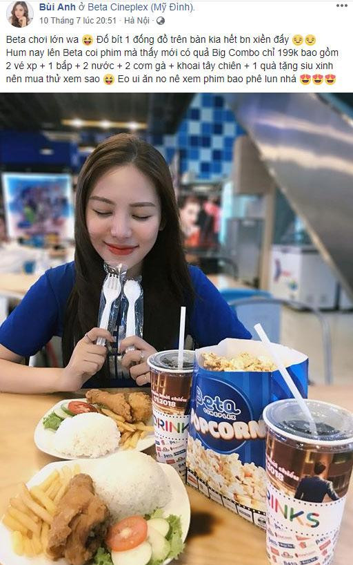 Cùng với đó, khắp các trang mạng xã hội, các bạn trẻ cũng nô nức chia sẻ hình ảnh địa điểm đang hot nhất hiện nay với Big Combo 199K gồm 2 vé xem phim + 1 bắp lớn + 2 nước + 2 cơm gà + 1 món quà xinh xắn hấp dẫn.
