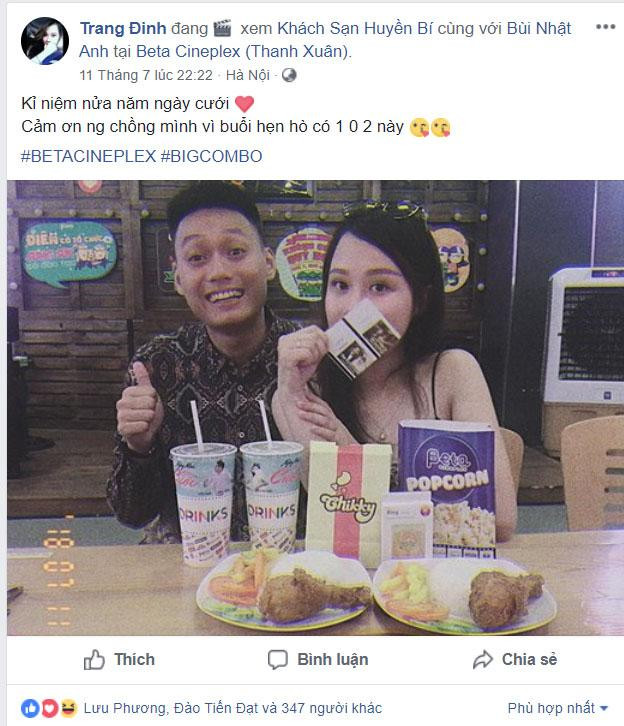 Không chỉ các cặp đôi rủ nhau đến Beta Cineplex hẹn hò, còn có cả các cặp vợ chồng mới cưới đến hâm nóng tình cảm nữa, điển hình là cặp vợ chồng rất hot hiện nay Nhật Anh Trắng.