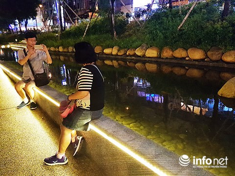 Có rất nhiều người dân Đài Trung, du khách thập phương và nhất là lao động trẻ của các nước Ấn Độ, Đông Nam Á… đến đây thư giãn, hóng mát, nghe tiếng nước chảy róc rách, ngắm những đàn cá bơi lội tung tăng trong làn nước trong vắt hay những hòn sỏi bỗng trở lên lung linh dưới ánh đàn tỏa xuống dòng kênh…