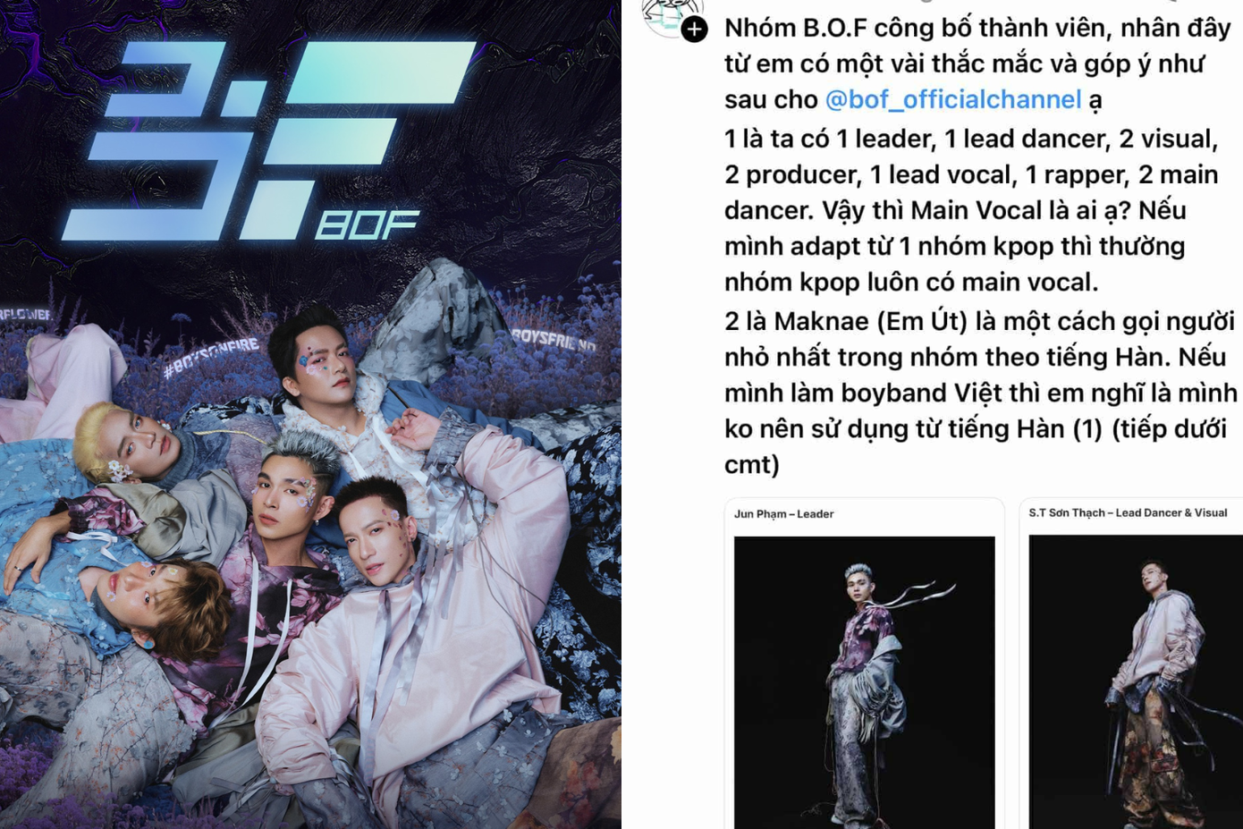 Bên cạnh những lời khen, netizen cũng có góp ý đối với cách phân bổ đội hình của B.O.F. Một fan thắc mắc thành viên nào sẽ đảm nhận vai trò main vocal (hát chính) - theo đội hình boyband thông thường.