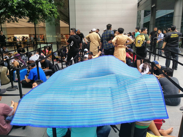 Đáng chú ý, tính đến 15h hôm nay (giờ Singapore), tức sau thời điểm xếp hàng khoảng 3 tiếng, nhân viên Apple Store tại đây chỉ đồng ý cho người dùng sử dụng vòng tay này để đi vệ sinh cá nhân và chưa thiết lập việc cho phép đi ăn. Chính điều này khiến cho nhiều người xếp hàng đói lả, nằm vật vã dưới trời nắng nóng ở Singapore.