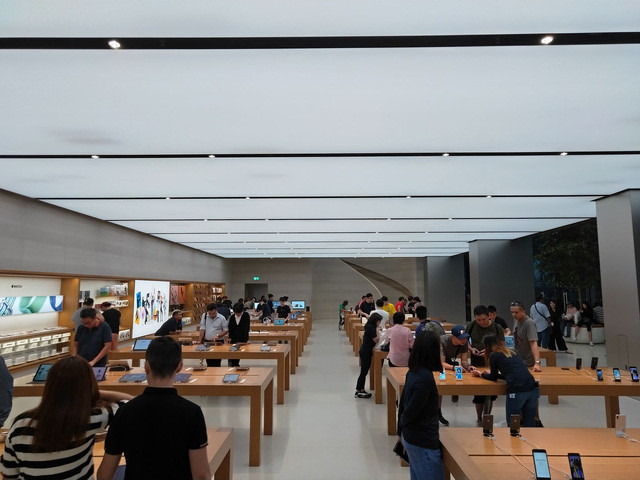 Trong đêm 19/9, nhân viên của cửa hàng Apple cũng bắt đầu có sự trao đổi trước sảnh cửa hàng về việc xếp hàng và lắp rào chắn. Trước đó ngày 18/9, nhiều người Việt cũng đã có mặt tại Apple Store rất sớm để tham quan cũng như trải nghiệm sản phẩm, chờ đợi đến thời điểm xếp hàng mua iPhone mới.