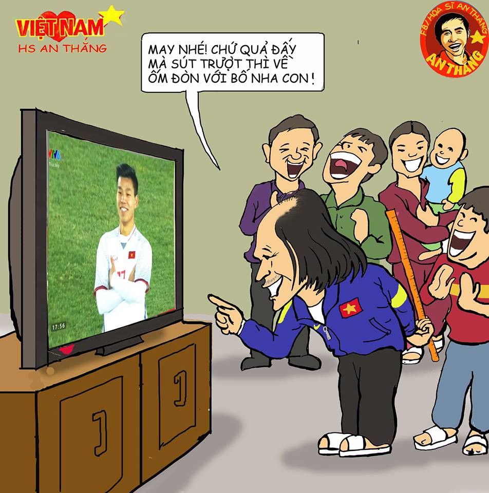 Giai nhà ghi bàn, cả nhà hân hoan (Tranh: Họa sỹ An Thắng).
