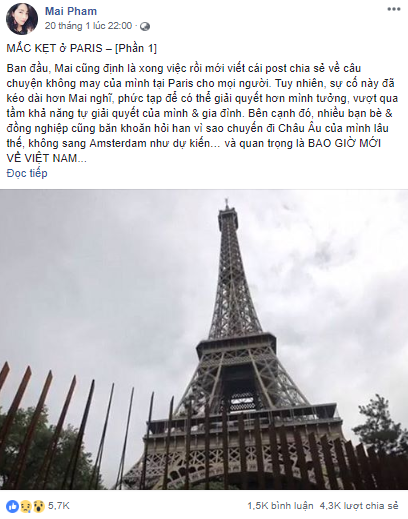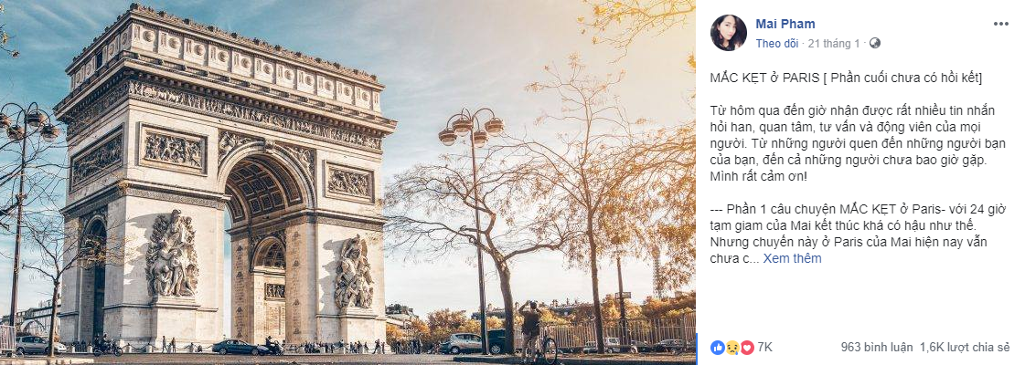 Bài đăng về hành trình "ác mộng" tại Paris được chị Mai đăng tải thành 5 phần trên trang cá nhân và hiện vẫn đnag thu hút rất nhiều sự chú ý. Diễn biến câu chuyện được tường thuật khá chi tiết từ việc bị áp giải ra sao, phòng giam thế nào, đồ ăn cho người bị bắt giữ... Trong quá trình bị giam giữ chị cũng được gặp và giúp đỡ bởi 1 nữ thông dịch viên người Việt làm việc tại Paris, 2 luật sư bào chữa miễn phí cũng như giúp báo tin về cho gia đình tại Việt Nam. Bạn trai của chị cũng đã tìm cách để đến toà án gặp chị, dù chỉ có thể nói chuyện với nhau từ xa qua sự giám sát của nhân viên an ninh.