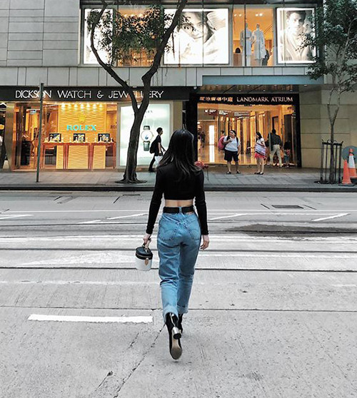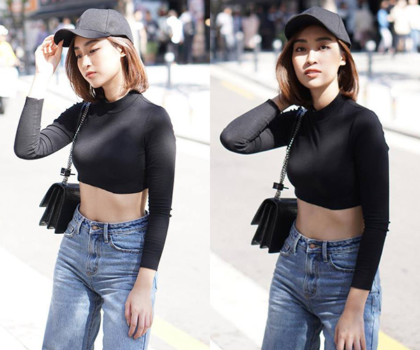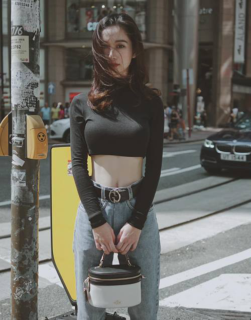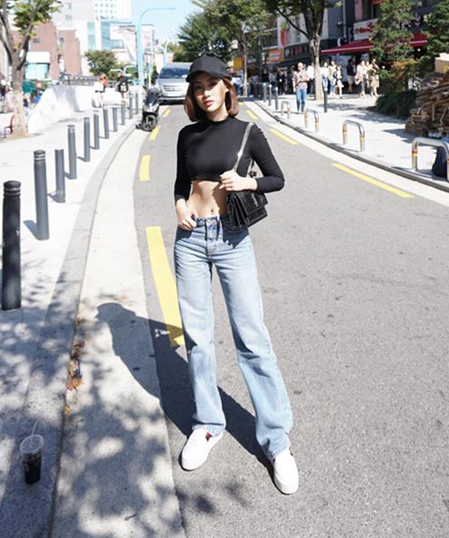 Hình ảnh của Hoa hậu Mỹ Linh trên đường phố Seoul khiến nhiều người bất ngờ vì sự mới lạ. Khác hẳn với phong cách nữ tính trước đây, người đẹp thay đổi 180 độ với bộ cánh phối áo croptop cùng quần jeans cạp trễ, tôn lên vòng eo thon.