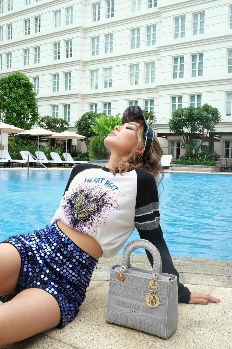 Rich kid Thảo Nhi Lê trong một set đồ khác của BST này, cô là người đẹp Việt quảng bá tích cực nhất cho Dior trong chiến dịch này của hãng.