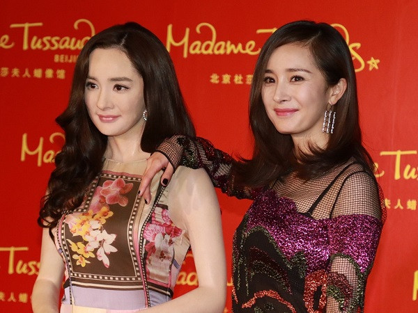 Dương Mịch và bản sao tượng sáp. Nét cười đúng chuẩn Mịch Mịch rồi.