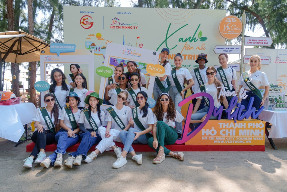 Dàn thí sinh Miss Earth 2023 chia thành nhiều nhóm nhỏ để tham gia những hoạt động khác nhau trong khuôn khổ của Tuần lễ Du lịch TP.HCM như: Trồng cây xanh, tìm hiểu về rừng ngập mặn, tìm hiểu về xây dựng khách sạn xanh…