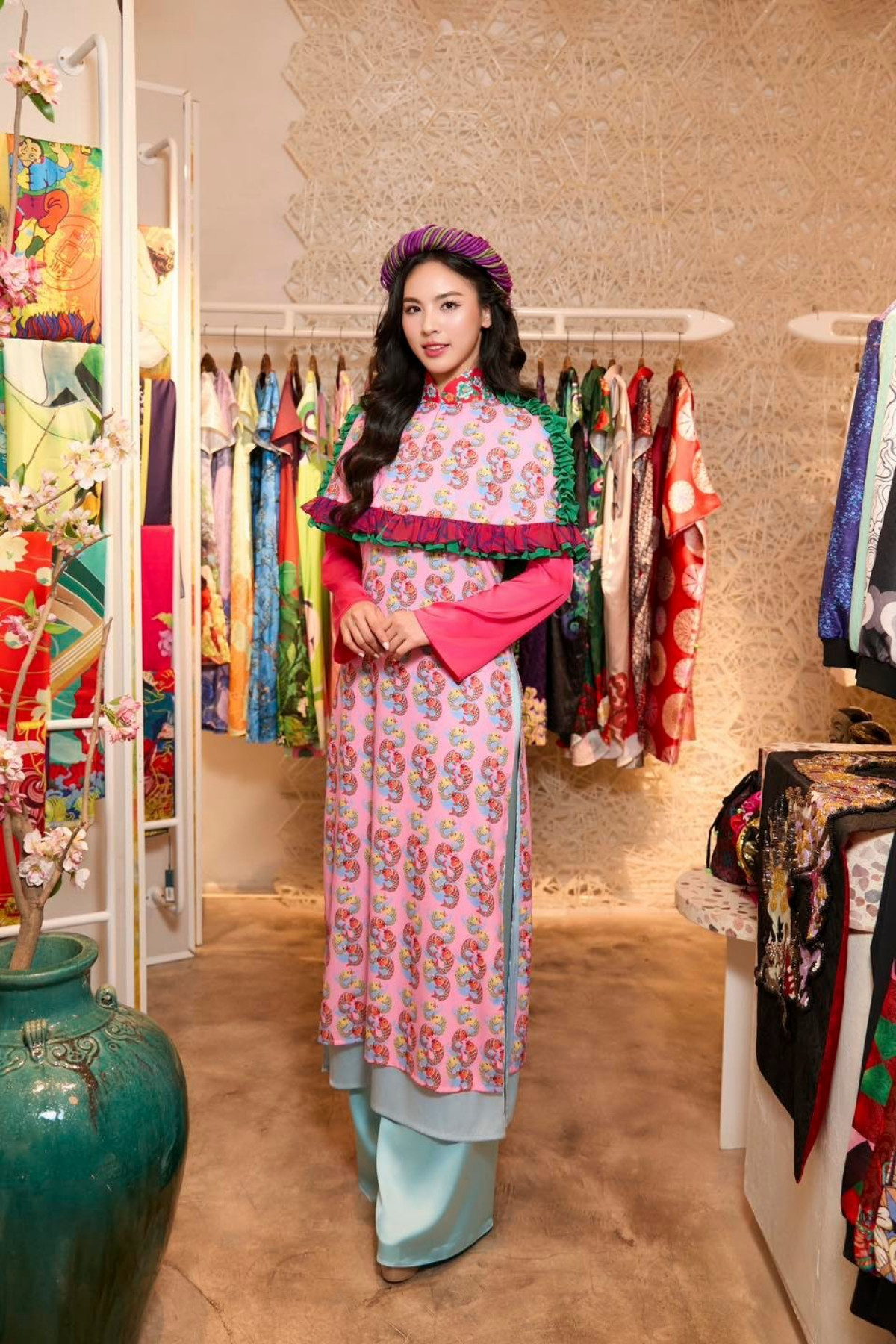 Áo dài là thiết kế truyền thống luôn xuất hiện trong những hoạt động của các cuộc thi nhan sắc quốc tế khi được tổ chức tại Việt Nam. Mới đây, dàn thí sinh của cuộc thi Miss Charm (Hoa hậu Sắc đẹp Quốc tế) 2024 đã có cơ hội đọ sắc trong trang phục áo dài cách điệu, nằm trong BST Ru Hò Xự Xang Xê Cống của NTK Thủy Nguyễn.