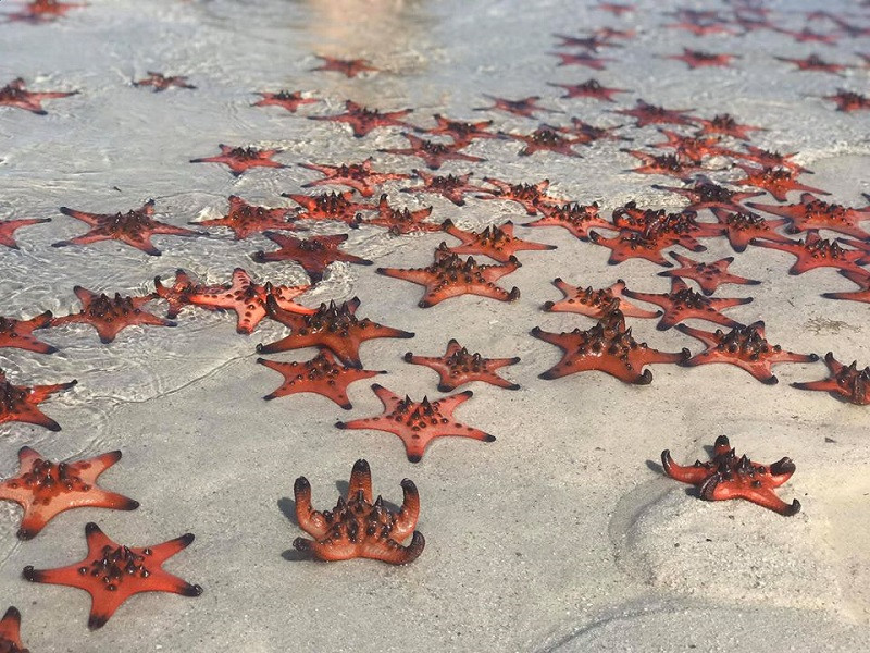 Lưu ý: Loài sao biển không thể sống sót nếu bị rời khỏi nước quá lâu, chỉ cần cầm lên chụp ảnh, xếp hình hay trêu đùa nó trong nước cũng khiến nó bị chết trong tích tắc. Chính vì thế, các bạn tham quan lưu ý đừng làm vậy nhé!