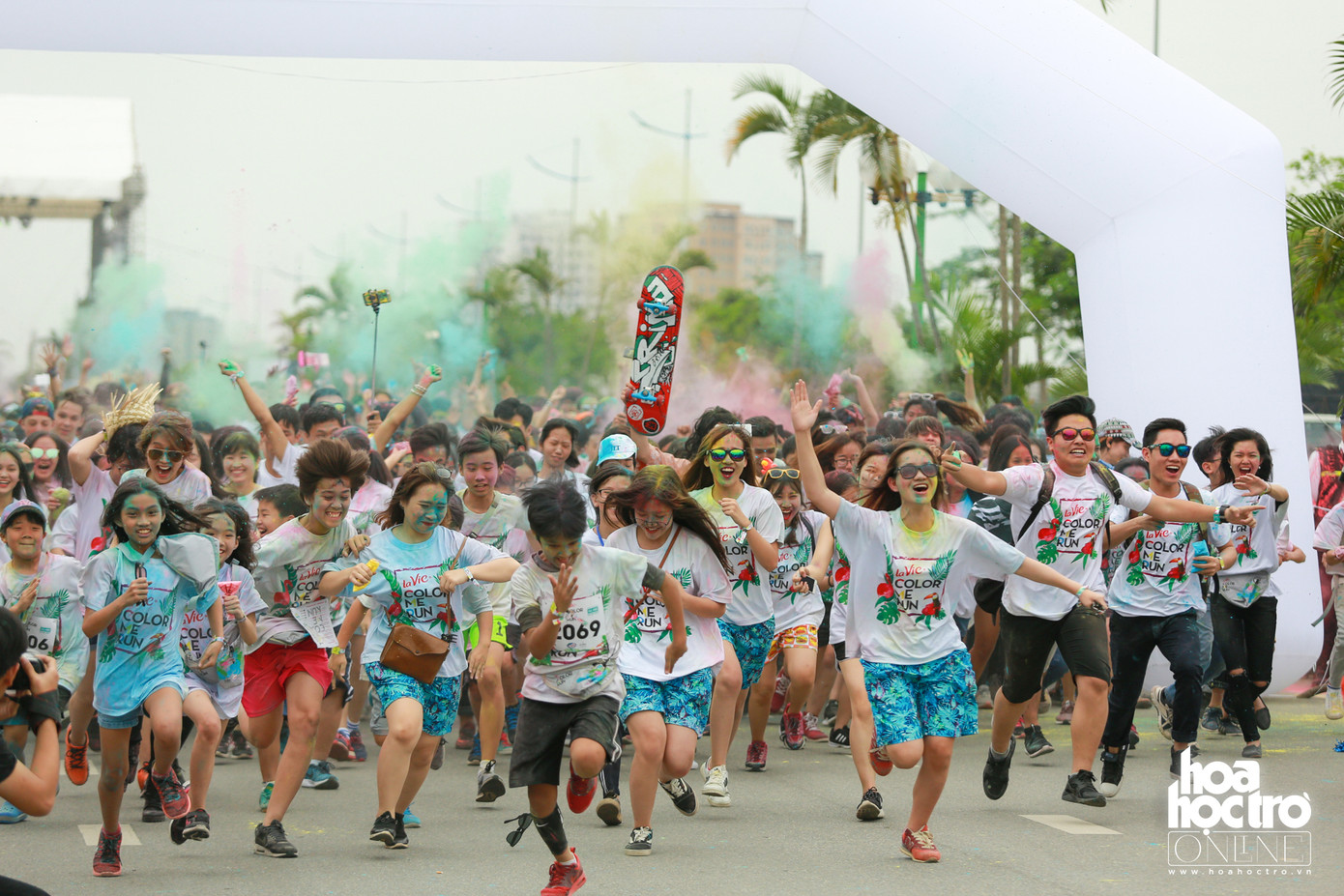 Tham gia vào sự kiện này, tất cả mọi người cùng được tắm trong làn “bão” bột nhiều màu sắc và thử thách bản thân với tiết mục chạy bộ 5 km.
