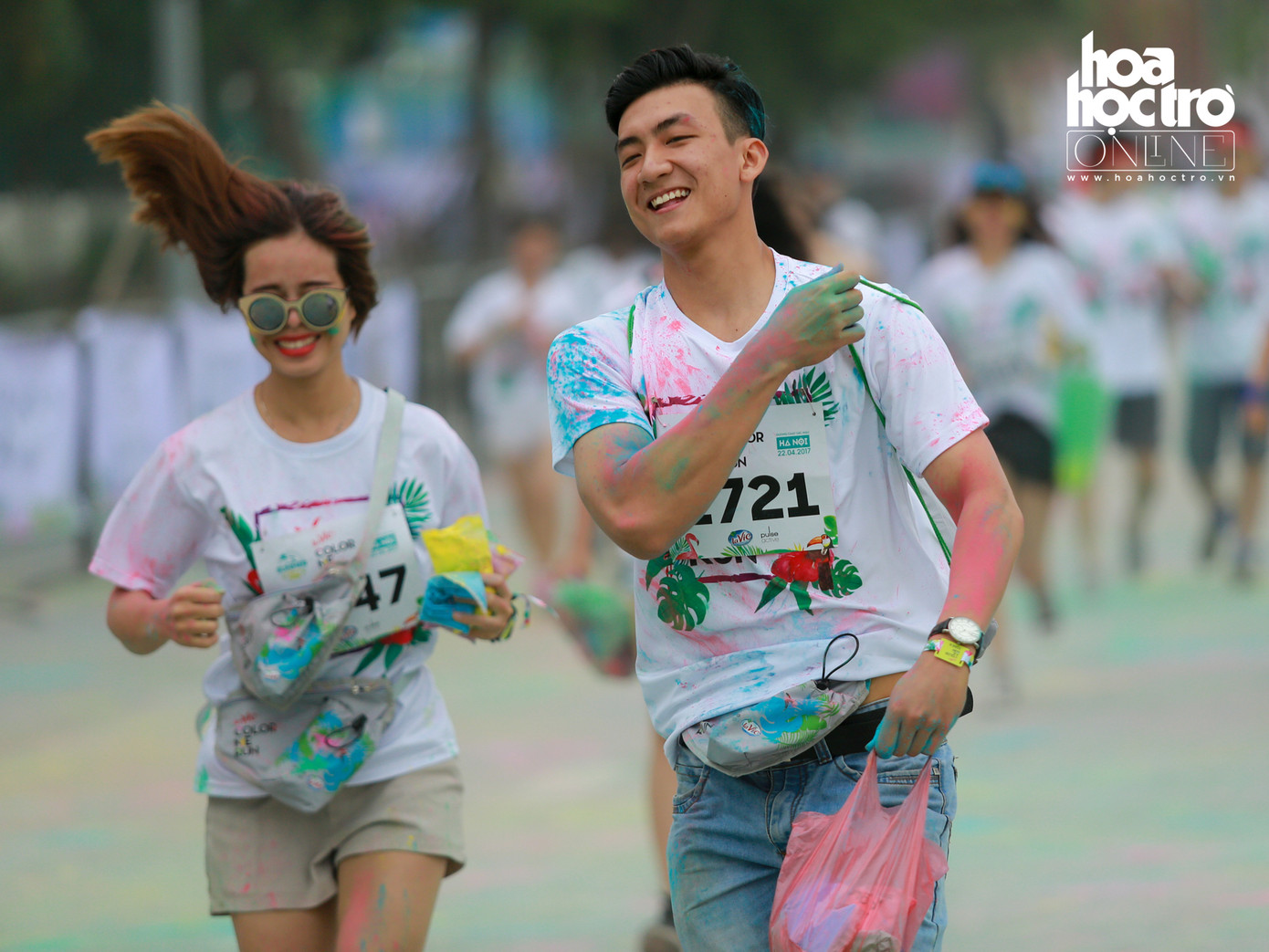 Giới trẻ quậy tưng bừng, còn các cặp đôi tranh thủ trao gửi tình cảm, đắm mình vào không gian sắc màu trên đường chạy dài 5 km tại sự kiện.
