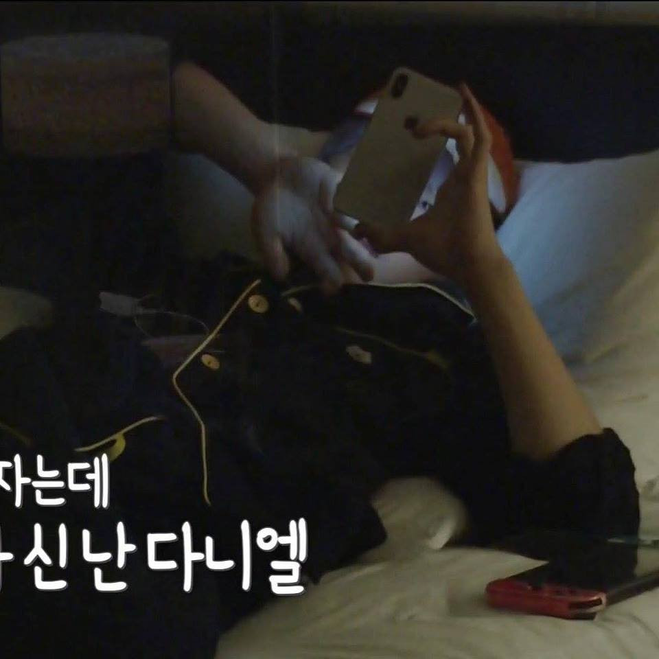 Anh chàng thường xuyên vừa nằm trên giường vừa xem điện thoại bằng một tay thế này. Thậm chí các ngón tay của Kang Daniel vẫn có thể ôm được điện thoại loại to hơn nữa ấy chứ.