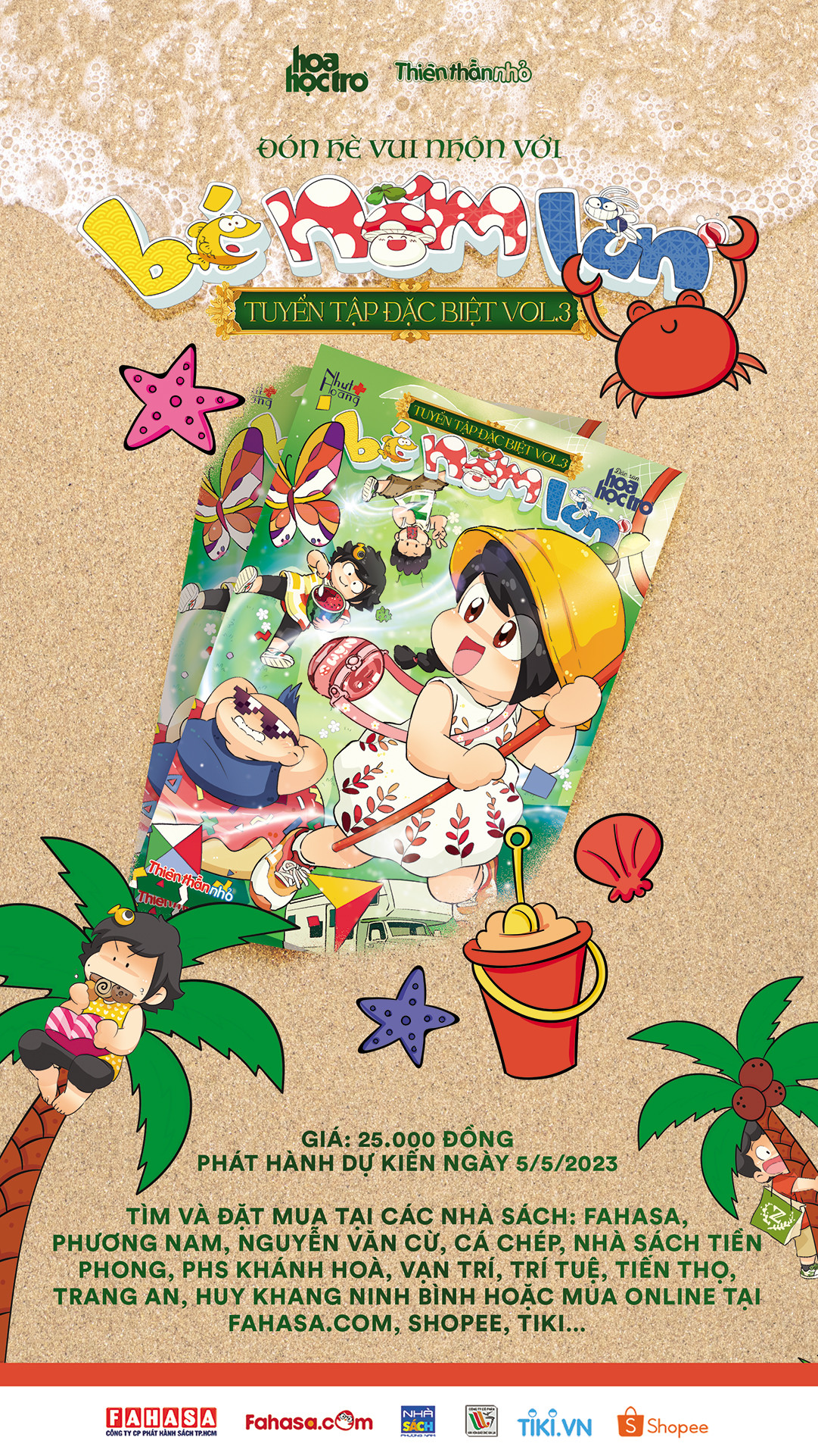 Bé Nấm Lùn tuyển tập đặc biệt Vol.3 chỉ có giá 25 cành hoa (25.000 đồng). Cùng xí ngay cho mình một quyển để mùa Hè bao vui nè! Ấn phẩm phát hành dự kiến ngày 5/5/2023 trên toàn quốc. Bạn có thể tìm mua tại hệ thống các nhà sách.