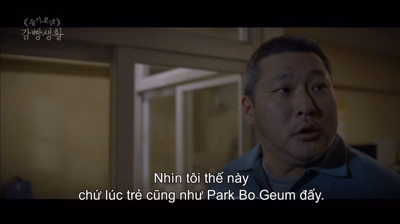 Trong tập 7, khi những người khác đã ngủ, Kim Je Hyeok một mình tập tạ phục hồi và nhớ về người yêu cũ (Krystal thủ vai). Kim Min Chul đã đến động viên Kim Je Hyeok và kể rằng hồi trước khi mới vô tù ông cũng nhớ người yêu. Nhận thấy Kim Je Hyeok không tin lắm, Kim Min Chul bảo rằng trông vậy chứ hồi trẻ ông rất giống “Park Bo Geum” và ai cũng nói vậy hết. Kim Je Hyeok “bóc phốt” rằng hồi Kim Min Chul còn trẻ thì Park Bo Gum còn chưa sinh ra thì làm sao mà người ta nói giống được.