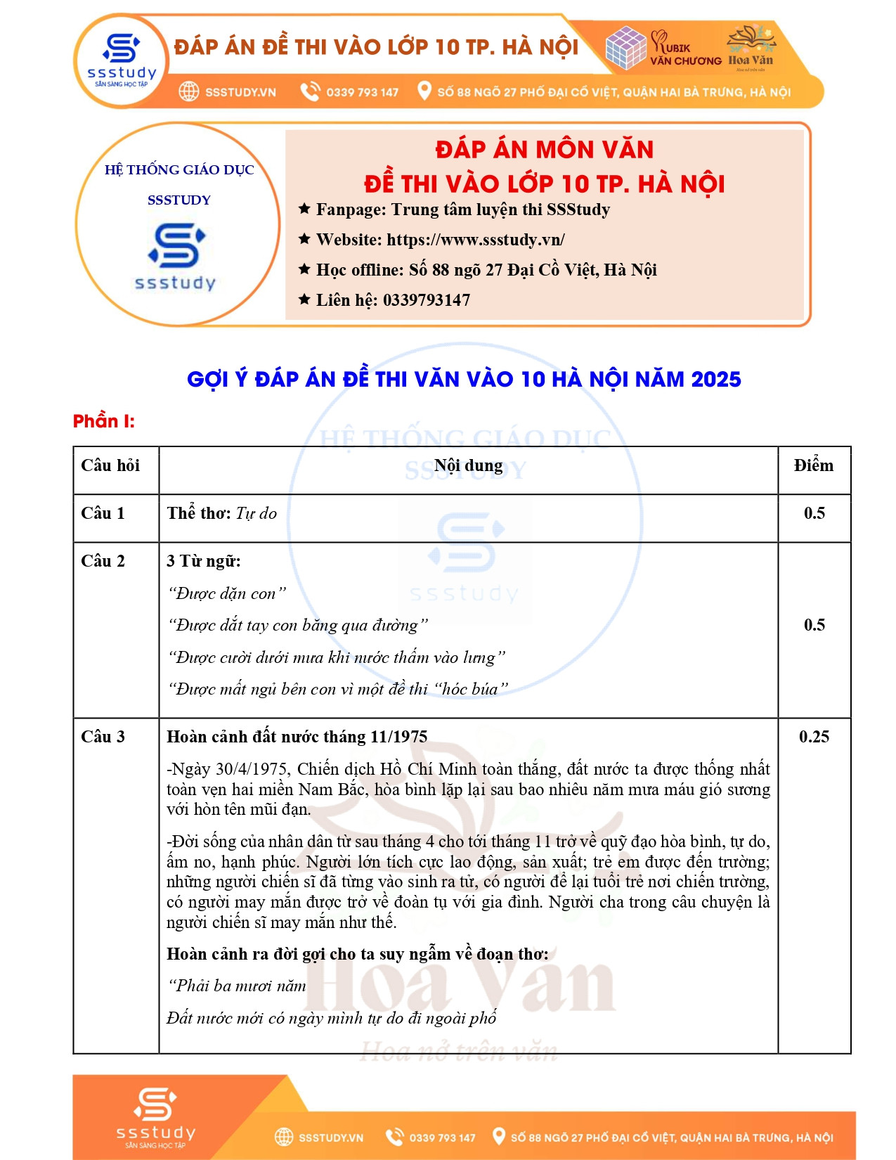 Dưới đây là gợi ý tham khảo đề thi môn Ngữ Văn được thực hiện bởi đội ngũ giáo viên tại Hệ thống giáo dục SSStudy và Rubik Văn chương: