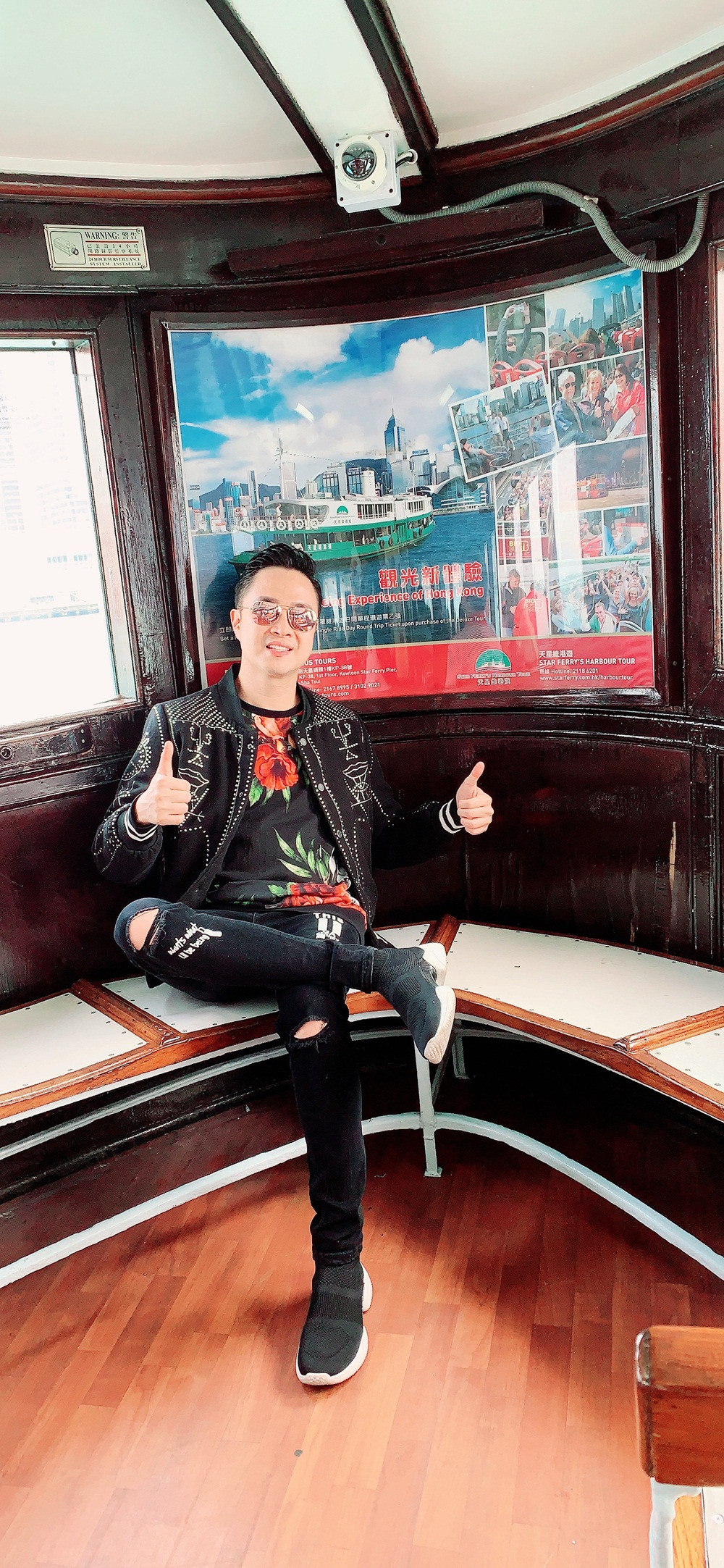 Nam ca sĩ chọn cho mình khách sạn có tầm nhìn ra ra bến cảng Victoria và đường chân trời của Hong Kong Island để tận hưởng kỳ nghỉ dưỡng thoải mái và chất lượng. Buổi sáng ở nơi đây, anh cùng những người bạn dậy sớm hưởng không khí trong lành và ngắm các tàu lớn ra vào tấp nập ở xứ cảng thơm. Ban đêm nhìn từ khách sạn ra là cảnh đẹp với những ngôi nhà chọc trời và đèn Neon rực rỡ.