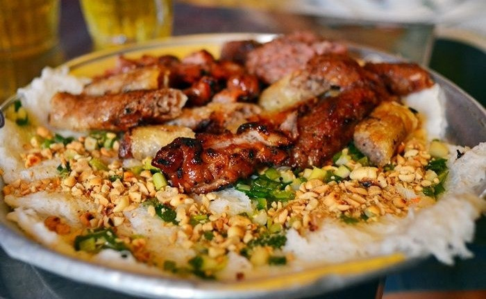 Bún thịt nướng là kiểu bún trộn có nhiều ở Đà Nẵng hay Nam Bộ nhưng nay thì ở khắp nơi đều có thể tìm thấy món ăn này. Thịt nướng miếng được ăn kèm với bún, rau sống, giá đỗ, hành phi, đậu phộng rang...Tất cả được hòa quyện trong nước mắm chua ngọt hoặc mắm nêm kiểu Đà Nẵng. Trộn đều các nguyên liệu, chúng như bổ sung hương vị cho nhau, vừa dễ ăn lại không bị ngấy. Mỗi loại mắm mang đến một vị ngon riêng, nếu nước mắm chua ngọt mang đến sự thanh mát chua dịu nhẹ thì mắm nêm sền sệt lại giúp cho món ăn trở nên đậm đà hơn.