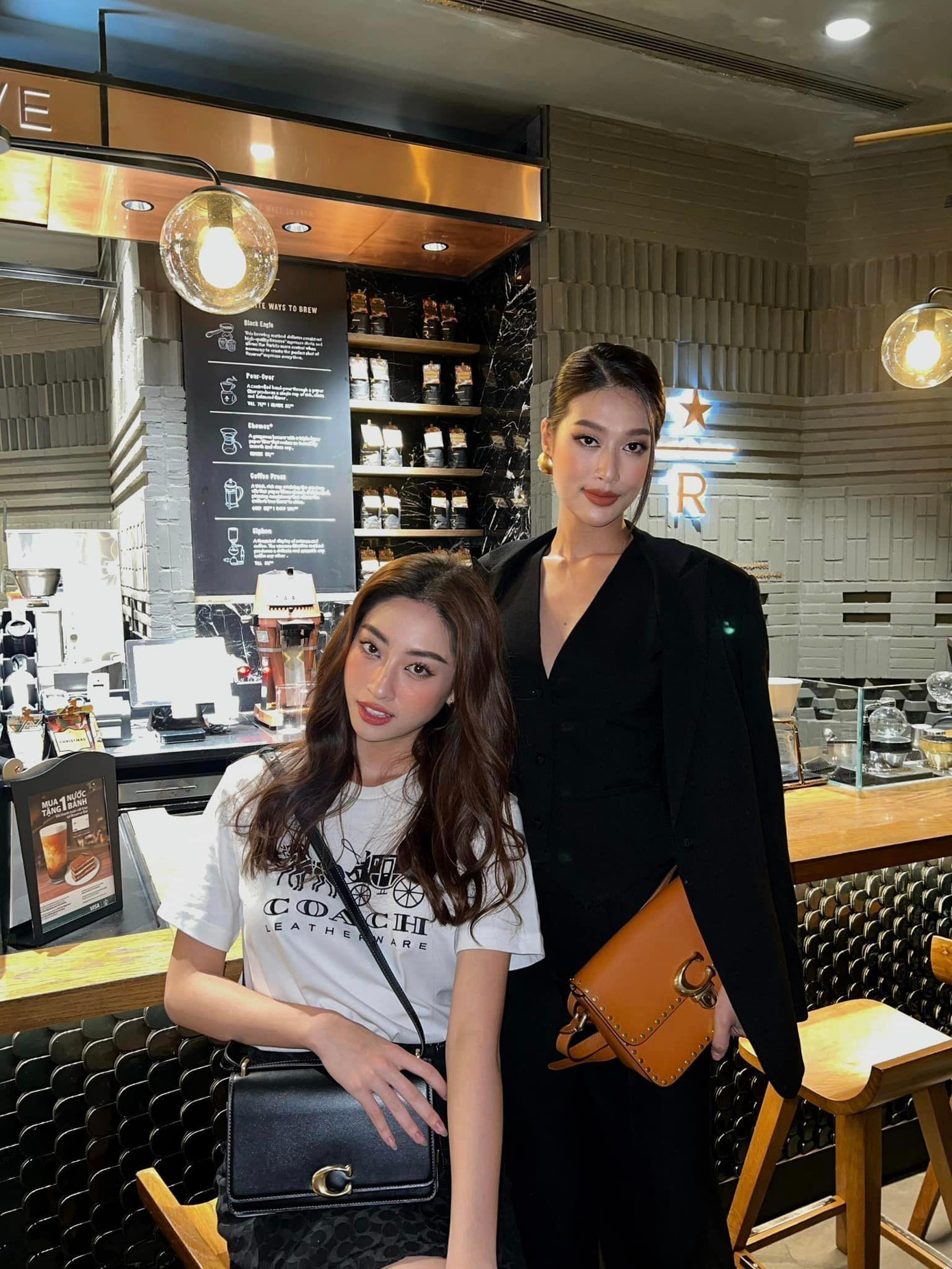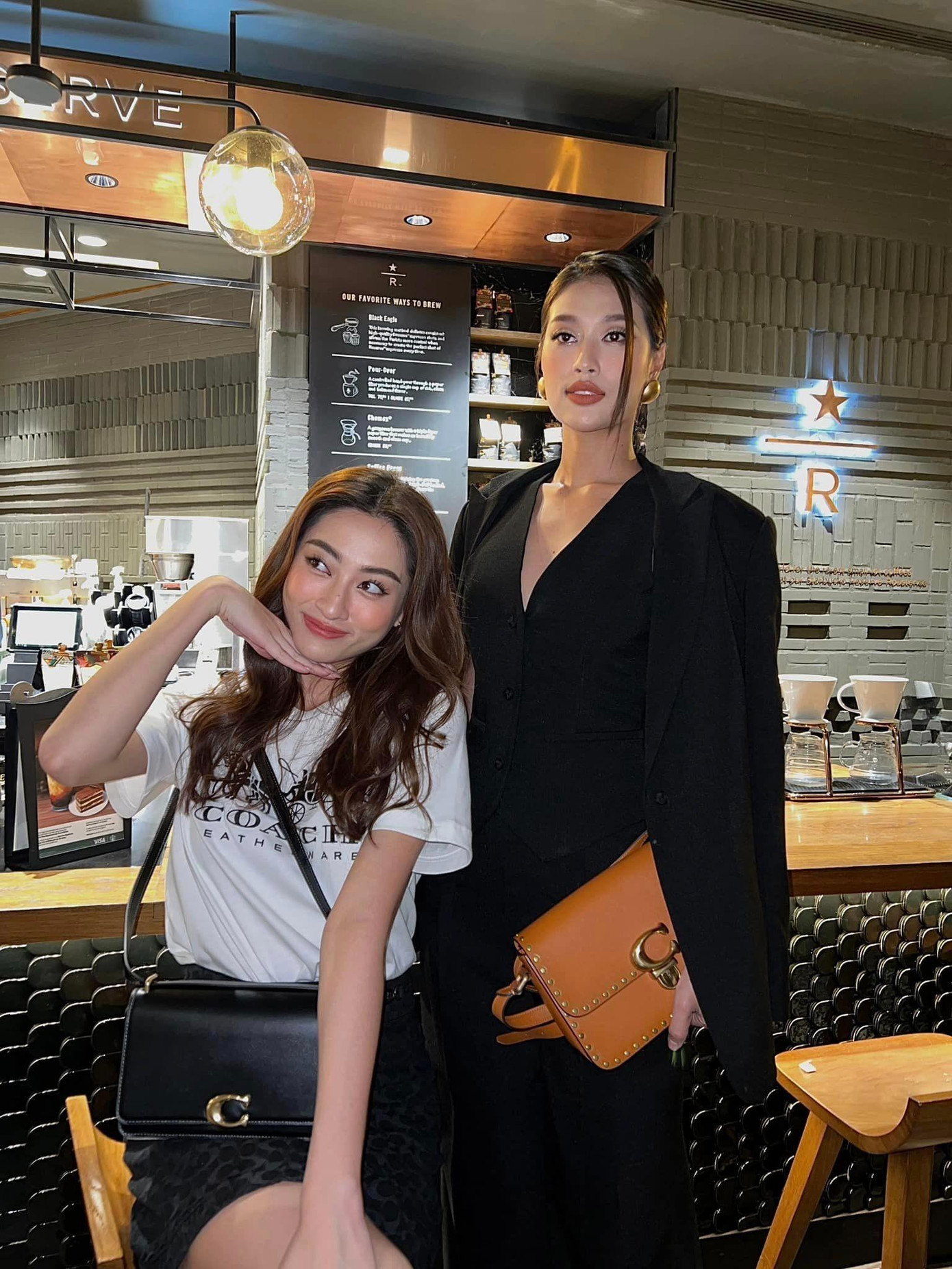 Mới đây, người đẹp đã chia sẻ loạt ảnh chụp chung với Thiên Ân khi hai cô gái cùng đi sự kiện. Hai nàng hậu bằng tuổi nhau nhưng Lương Thùy Linh lại đăng quang trước Thiên Ân tới ba năm nên giàu kinh nghiệm hơn.