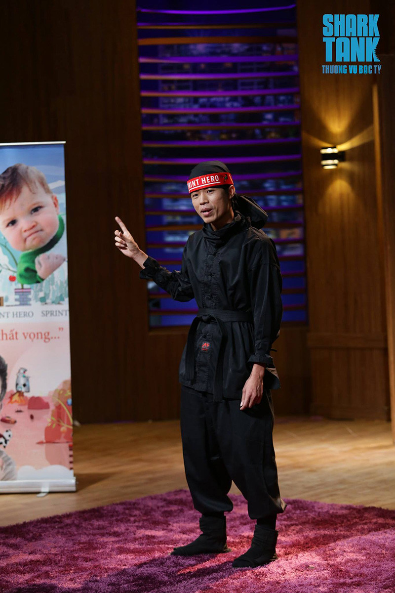 Xuất hiện đầy bất ngờ trong trang phục ninja, anh Phạm Mỹ Mãn – CEO của Agritelecom – thu hút sự chú ý của toàn bộ trường quay lẫn khán giả ngồi trước màn ảnh nhỏ. Sau khi thực hiện vài màn nhào lộn, Phạm Mỹ Mãn trở về vị trí và bắt đầu màn kêu gọi vốn của mình.